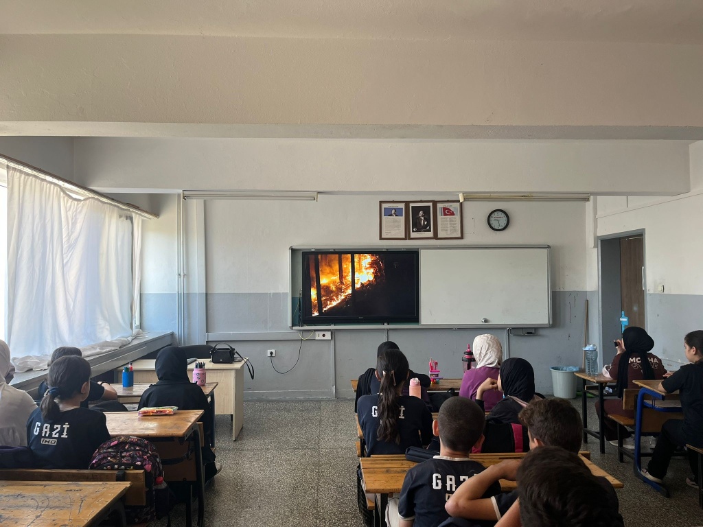 Okulmuz öğrencilerine Yeşil Vatanım temalı Fen Bilimleri öğretmenimiz tarafından bir eğitim gerçekleştirildi. Özellikle eğitimde yeşil alanlarımızın korunması, oksijen kaynaklarımızın tükenmemesi için alınması gereken önlemler, orman yangınlarıyla mücadele çalışmalarının önemi, ormanlarımızın korunması temalarında öğrencilerimiz eğitim aldılar.